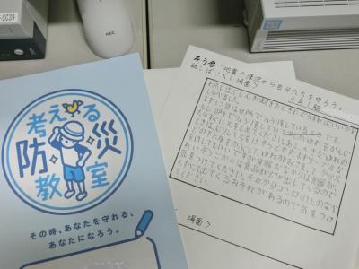 児童は防災教育の一環として、地震や津波の被害やライフラインへの影響、震災後の生活などについて、インターネットや防災教室の資料で調べていきました。調べた内容は「紙芝居」にして、クラスで発表する予定です。今日は防災について調べたことを、紙芝居の1枚目に文章でまとめました。防災について、まだまだ知りたい、調べたいと言っている児童がたくさんいました。