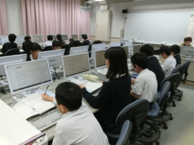 11月13日(月)3限、4年生は総合の時間、パソコン教室で「地震や津波から自分たちを守ろう」について学習をしました。