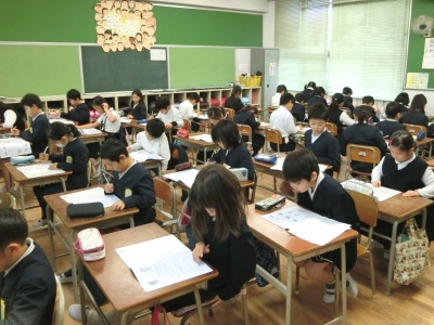 1月10日(水)2限、今日から3日間の予定で「大阪市学力経年調査」を行っています。このテストは、昨年度から3年生から6年生を対象に大阪市が独自で行っている悉皆の調査で、児童一人一人の学習理解度・学習状況を知り、目標を持って学習に取組めるようにすることなどを目的としています。全市で1億6,200万円の予算をかけ、国語・社会・算数・理科の教科に関する調査と、学習・生活状況等に関する調査を行います。