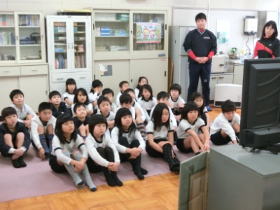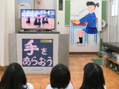 1月10日(水)2限、今日から3学期の「発育測定」が始まりました。2年生は、測定前に3年前の健康委員会が制作した「手あらおう」のビデオを観ました。