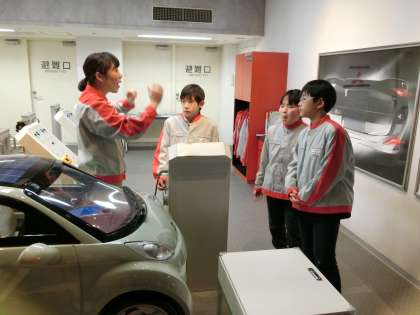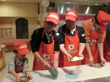 午後からも、自動車工場【写真左】やピザショップ【写真中】、ラジオ局、デパート、飲料メーカー【写真右】などのパビリオンをまわりました。子どもたちは、15時の集合時間いっぱいまで活動を楽しみました。