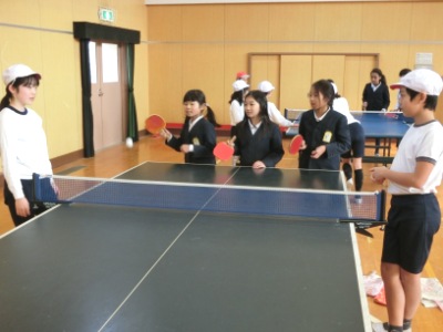 3年生の40名は2班に分かれて、マンガイラスト【写真左】、科学工作、バドミントン、卓球【写真中】、ボール運動、パソコン【写真右】の6クラブを見学しました。各クラブともたった6分間の見学でしたが、自分の入りたいと思うクラブの場所では、興味深く見ていたり、体験したりしていました。みんな、どのクラブに入ろうか迷っているようです。