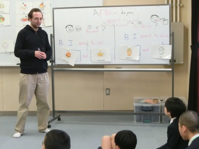 2月16日(金)3限、5年生はC-NETと「外国語活動」の授業でした。今日は外国語活動教材 "Hi friends!" Lesson9の "What would you like?"(あなたは何が好きですか) の学習です。”What do you want to eat?" "I want to eat cake"のように、ハンバーガーやピザ、寿司、納豆など食べ物の絵を見ながら答え、英語の発音に慣れ親しんでいました。
