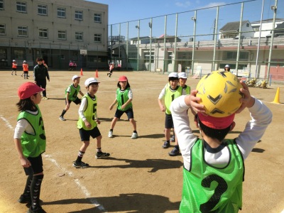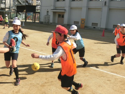 3月6日(火)6限、4年生は体育の授業で、「ミニサッカー」を行いました。今日が初めてのミニサッカーの授業で、パスやドリブルの練習をしました。2学期にタグラグビーをしたので、練習試合ではチームのめあてや作戦タイムの持ち方も上手にしていました。細かなルールは自分たちで決めて、審判も行っていました。