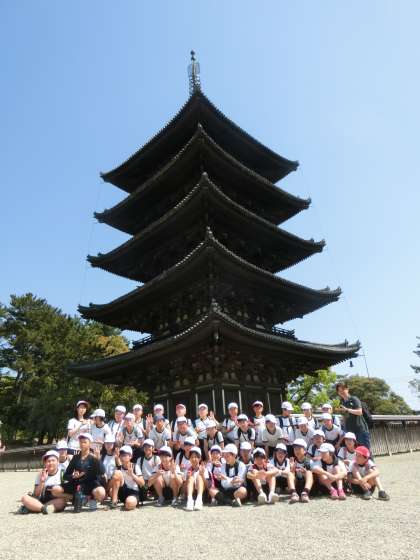 遠足の最後に興福寺五重塔でクラスごとに記念撮影をしました。とてもいい天気で、疲れましたが、最高の遠足でした。