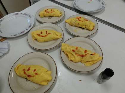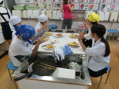 6月20日(水)午前、6年生は調理実習を行いました。今日は材料は決まっていますが、作るものは各グループで相談して決めました。どのグループもおいしそうに作れていました。きれいなオムレツに感心!