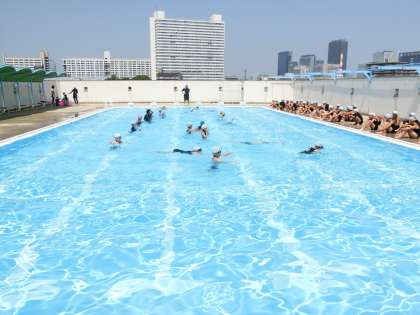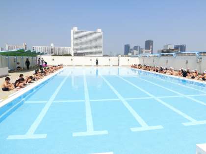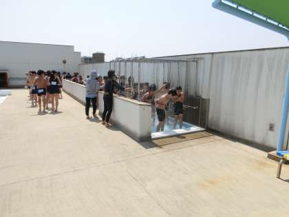6月25日(月)午前、3・4年生がプール開きを行いました。はじめにプールのきまりの話を聞き、準備運動。そして、シャワー。元気な歓声があがっていました。水慣れをしてから、けのび・バタ足で泳ぎました。とてもよい天候でした。