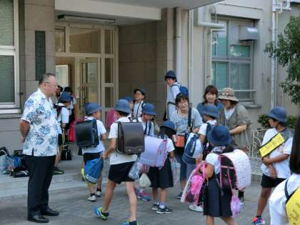 7月18日(水)朝、1学期最後のあいさつ運動がありました。運動委員会の児童が全員集まり、元気のよいあいさつの声が響いていました。いっしょにPTAの方々による「西日本豪雨災害支援募金」活動が行われました。20日(金)まで3日間実施される予定です。よろしくお願いします。