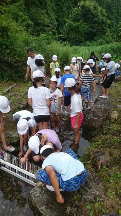 捕まえた魚は宿舎の方が串に刺して焼いてくださり、ふだん苦手の子どもも「がぶっ!」