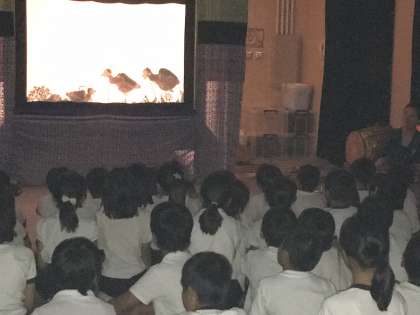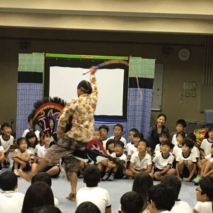 今日は、「いきいき」の子どもたちと城陽中学校区の子どもたち、そして保護者の方が参加して、インドネシアの影絵や楽器の演奏を鑑賞しました。