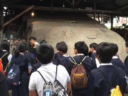江戸時代に作られてから200年が経過し、今も使われているのぼり窯を見学しました。現在はガスや電気で焼くようになりましたが、1300度の高温で焼き、釉薬をかけなくてもガスや電気では出せないあじわいが出るそうです。