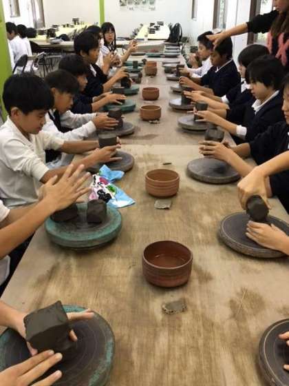 粘土の扱い方や成形の仕方を教えていただき、手びねりを体験しました。みんな真剣に取り組んでいました。