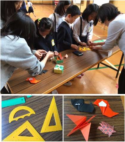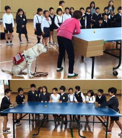 盲導犬の力を借りて一人で外出し、スポーツや料理、人との交流など、何でもできますとおっしゃっていました。子どもたちは、点字の本や文房具、折り紙の作品を見せていただき、いろいろ視力を助ける工夫がされていることに感心していました。楽しそうに前向きに取り組まれる姿に、できないとあきらめず、やってみることが大切だということを教えていただきました。