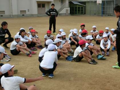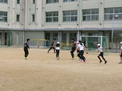 11月12日(月)2・3時間目、セレッソ大阪のコーチが来校されサッカーの学習が行われました。今回は4年生が参加しました。まず、おにごっこやドリブル練習など基礎的な練習を行いました。みんな一生懸命、楽しそうに取り組んでいました。次の時間は、コーチとの試合を行いました。勝ちたくて必死にボールを追いかける4年生。しかし、さすがはコーチです。惜しくも5対6で負けてしまいました。コーチのじょうずな教えでみんな楽しんでサッカーができました。とてもよい体験ができました。