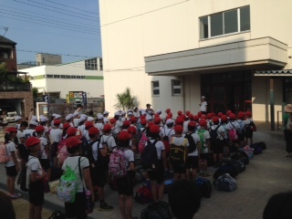 7時に体育館前に集合!出発式が行われました。