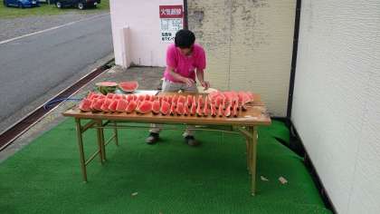 宿の方が準備してくださったスイカ、おいしそうですね!