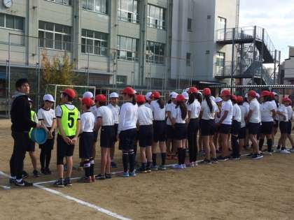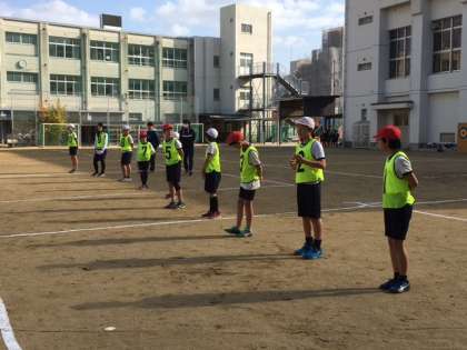 鴫野小学校、城東小学校、森之宮小学校、本校の6年生が集まって、スポーツ交流会を行いました。4小学校合同でチームを作り、ドッヂビーと大縄跳びを楽しみました。