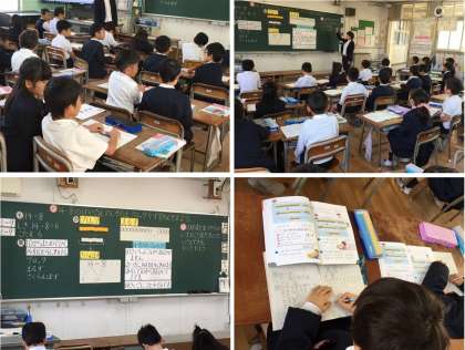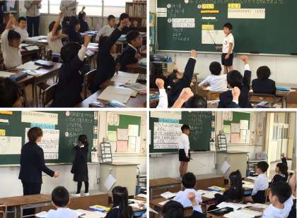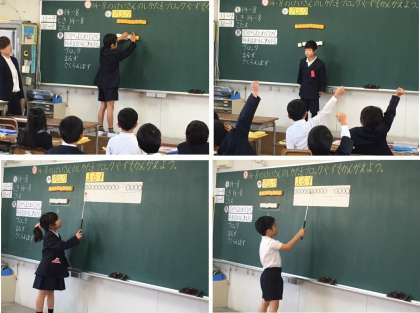11月30日、1年算数科の研究授業を行いました。繰り下がりのあるひきざんの学習です。ブロックや丸図を用いて数を視覚的に捉え、ひとつひとつ数えながら答えを求める方法から、数字を十の位と一の位に分けて10のまとまりから引き算する方法へ、数の構成や計算の概念への理解を深めていきました。子どもたちは考えを活発に発表し合っていました。