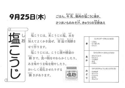 鶏肉の塩こうじ焼きは、鶏肉が塩こうじで柔らかくなって、味がしみこんだ焼きものです。たまねぎの甘さと合わさってごはんのおかずにぴったりです。「柔らかくておいしい」と、好評です。