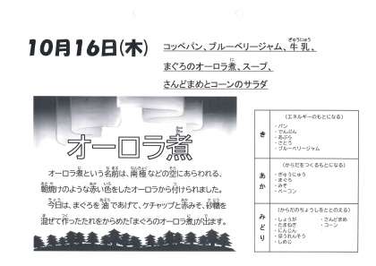 かつては、「くじらのオーロラ煮」がよく出たのですが、くじらの流通量が少なくなってからは、まぐろを使うようになりました。南極のオーロラとくじらの組み合わせで考えられた献立でした。