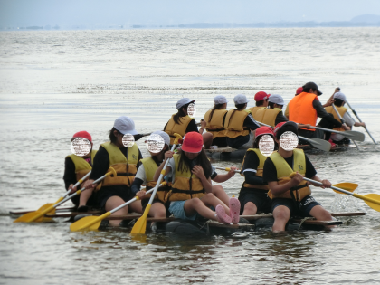 ・今日のいかだ体験で使った衣服やタオルをまとめていると思います。琵琶湖の水がついていますので、早めに取 り出していただきますようお願いします。