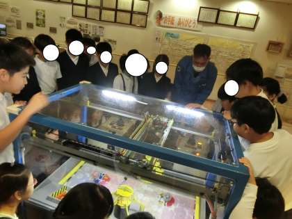 模型のごみピットのクレーンを操縦させていただきました。うまくごみを処理できるかドキドキしましたが、操縦した子の腕前とみんなの協力で大成功!とても楽しい体験でした。
