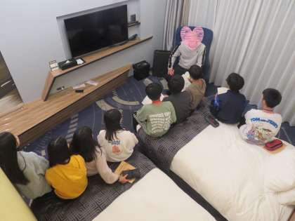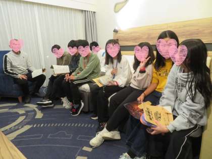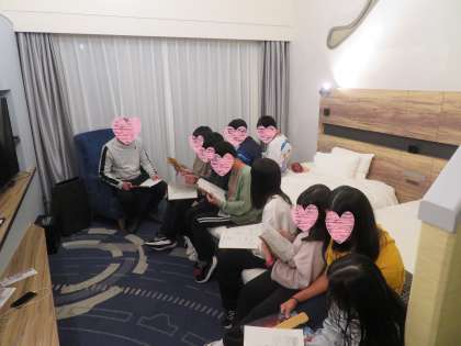 今日の反省とこれからお部屋ですること、明日の朝の予定などの連絡をしました。