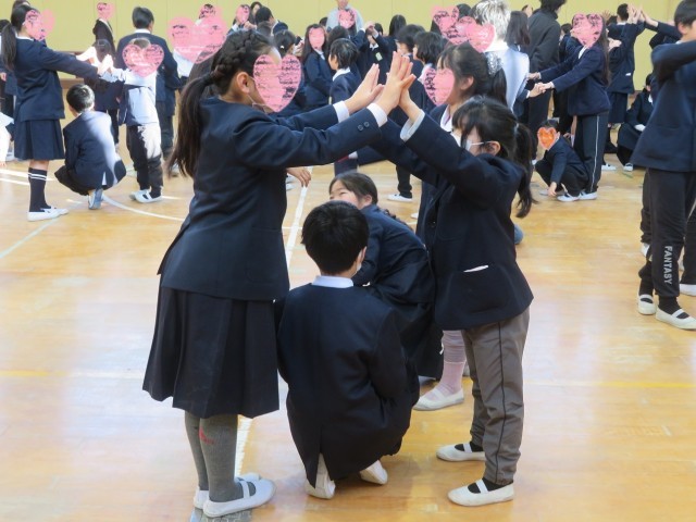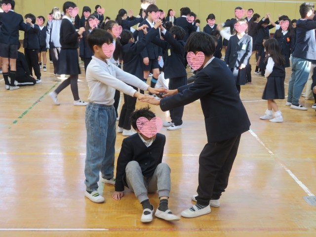 講堂中に子ども達のわいわい、ガヤガヤが広がって・・・。