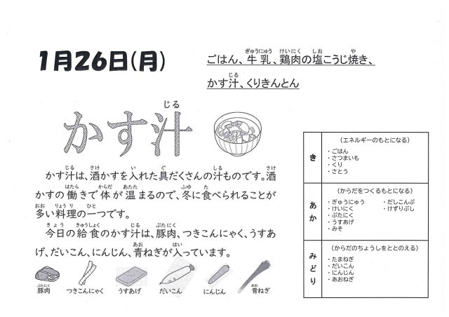 かす汁は、体が温まる汁物です。煮たてているので酒の成分は飛んでいますが、甘い香りが漂ってきます。