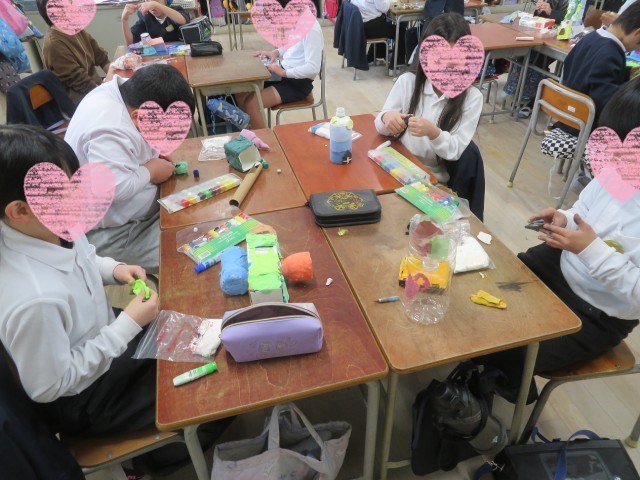 思い思いに粘土に色をつけて、小物を製作中でした!