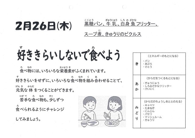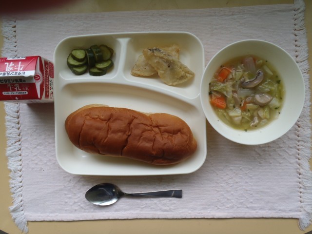 スープ煮は、具だくさんで、体が温まります。だしがよく聞いているので、人気の献立です。