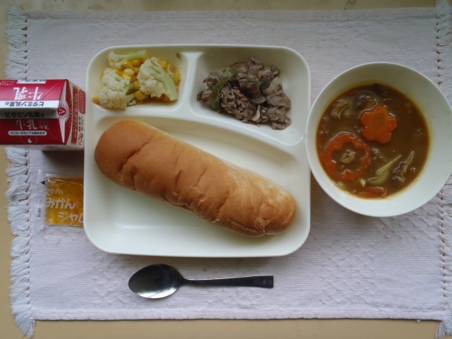 カレースープは、子どもが大好きなカレー風味のスープです。カレールウの素を使うので少しとろみがあります。ゴクゴク飲む人、パンにつける人、様々です。ラッキーにんじん♪で、気分もあがります。