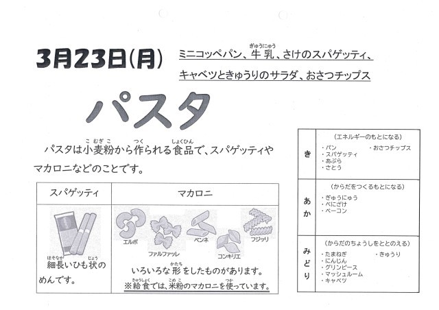 新学期の給食は、4月9日から始まります。楽しみにしていてください。