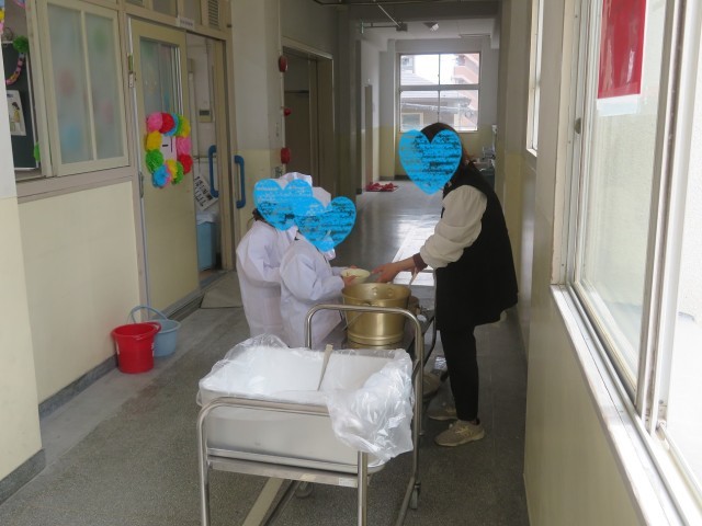 6年生の皆さん、しばらくは1年生の給食のお手伝い、よろしくお願いします!