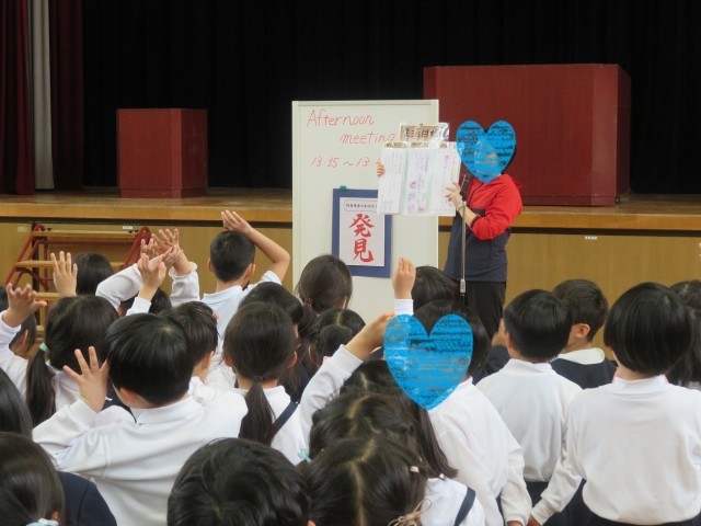 今年度から児童朝会をAfternoon meetingと改めて清掃終了後、13:35~13:50の間に実施することにしました。