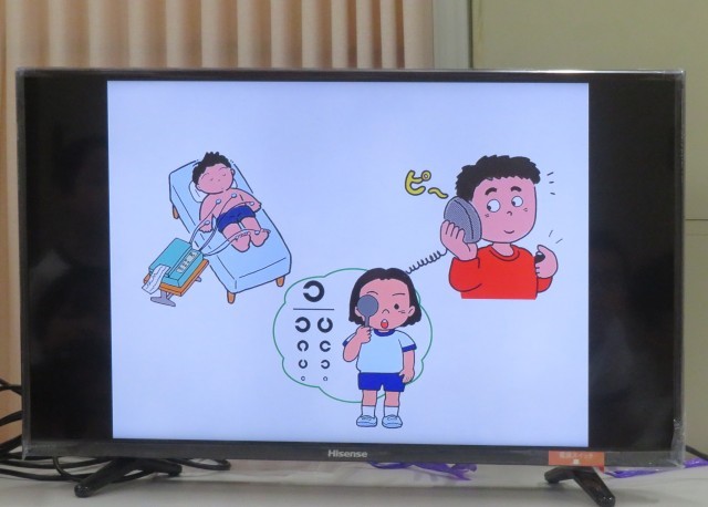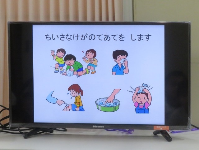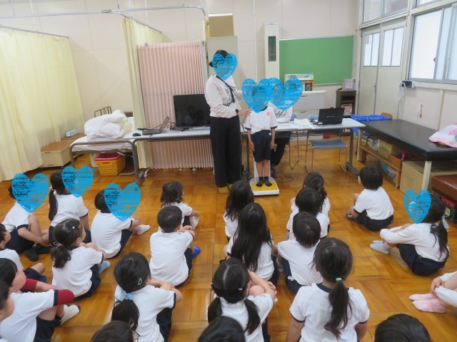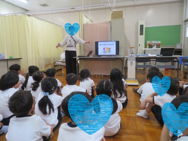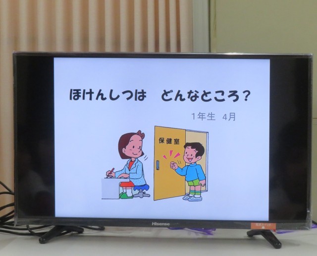 また、1年生は全員での保健室の利用は初めてなので、写真にあるように保健室の使い方の学習もしました。