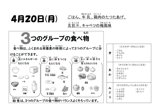 4月20日の給食