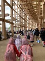 雨の中、大屋根リングを移動中です