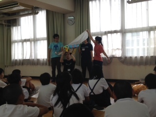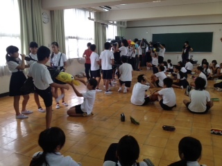 10月に人形劇団の公演が予定されています。その公演に向けて、6年生が劇団の方に人形の動かし方を教えてもらいました。当日の6年生の活躍が楽しみです。