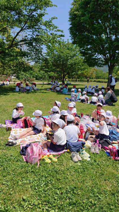 1・2年生が深北緑地に行きました。絶好の遠足日和です。快晴のもと、みんなで仲良くお弁当を食べました。