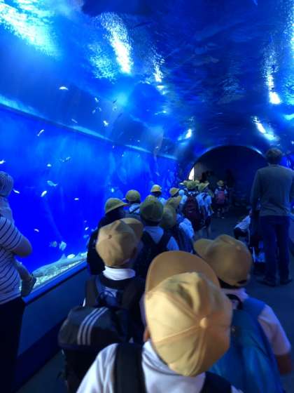 4年生が海遊館に遠足に行きました。アクア・ゲートはまるで透明な海底トンネルのようで、迫力満点ですね。生命の偉大さや尊さを感じることができたでしょうか。