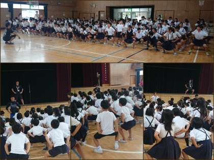 そのあと全員で、すもう大会に向けて、重心を低く保つ練習をしました。