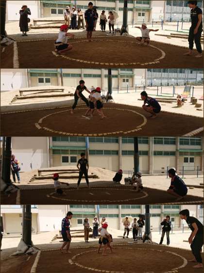 5月30日(木)2、3時間目 1年生のすもう大会が開催されました。緊張した神妙な面持ちで、取り組み前のおじぎや蹲踞(そんきょ)の姿勢は、かっこよく、取り組みは力いっぱい頑張りました。