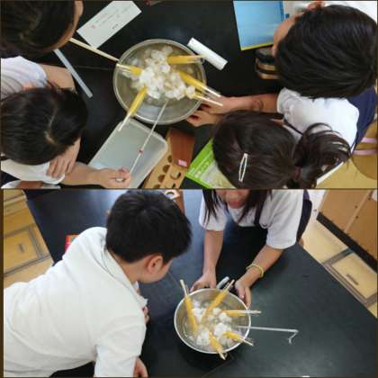 サイエンスクラブでは、塩と氷を混ぜると起こる氷点降下という現象を利用して、アイスキャンディー作りをしました。今日の暑さにぴったりの美味しいアイスキャンディーができました。