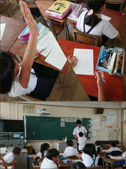 3年生は、1組が体育で『体ほぐしの運動をしよう』、2組が社会で『地図記号に親しもう』の学習でした。