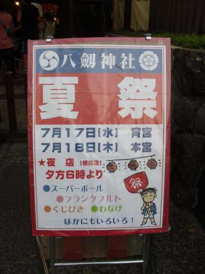 17日(水)夕方、八剣神社の夏祭りを見にいきました。たくさんの子どもたちが楽しんでいました。今日(18日)もお店が出るそうです。