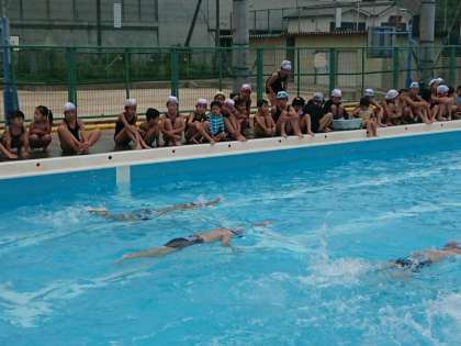 水泳の得意な子どもたちがクロールや平泳ぎを披露した時には、園児さん達は「すごい!」「習ってるけど、まだでけへん」などと口々に言っていました。