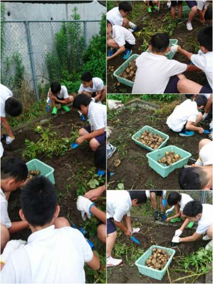 6年生がジャガイモの収穫をしました。このジャガイモは、理科の「植物のからだのつくりとはたらき」の単元の学習のために、栽培していたジャガイモです。