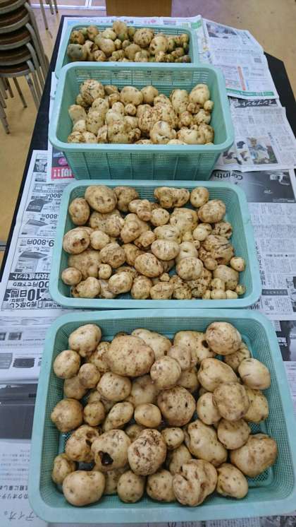 日光をたっぷり浴びて大きく育ち、たくさん収穫できました。6年生は、土の中からどんどん出てくるジャガイモに大興奮の様子でした。