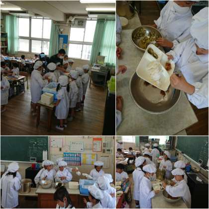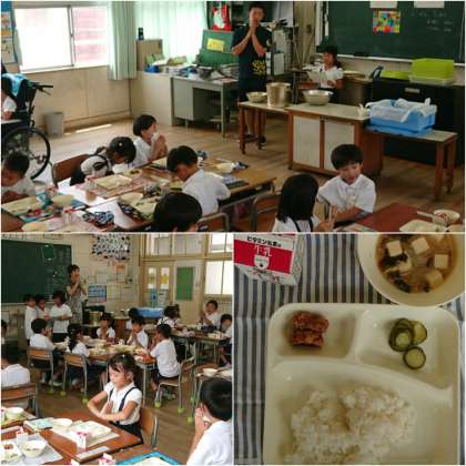 教室でも、ご飯やおかずを盛り付けたり、牛乳やストローを配ったり、協力して頑張っていました。